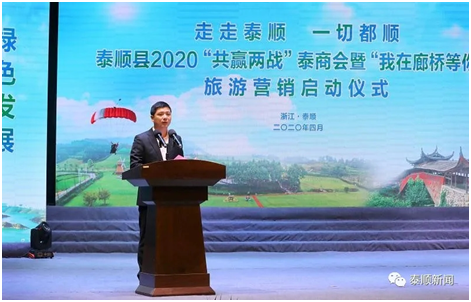 會議觀看了宣傳片《美在泰順》;頒發(fā)了抗擊新冠肺炎物資捐贈單位和個人代表感謝信;向抗擊新冠肺炎醫(yī)護人員贈送了泰順旅游大禮包;舉行了招商項目推介、招商項目簽約儀式和泰順旅游云直播互動。泰商代表嚴立淼、翁家許分別作了現(xiàn)場發(fā)言和視頻連線發(fā)言??h委副書記、縣長王慧杰發(fā)布了泰順縣旅游市場推廣政策,介紹了我縣2020年旅游消費券和旅游市場推廣獎勵辦法。與會領導嘉賓共同啟動2020“我在廊橋等你”旅游營銷系列活動。