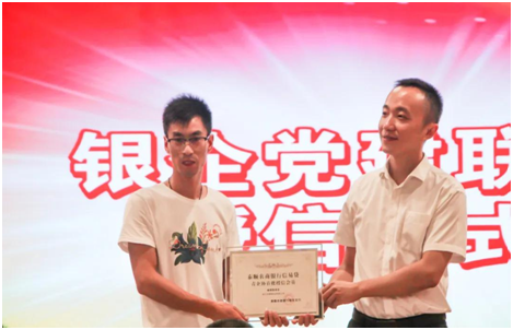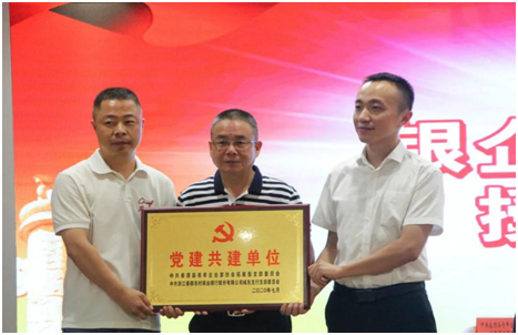 童德平部長(zhǎng)為銀企黨建聯(lián)盟授牌。
