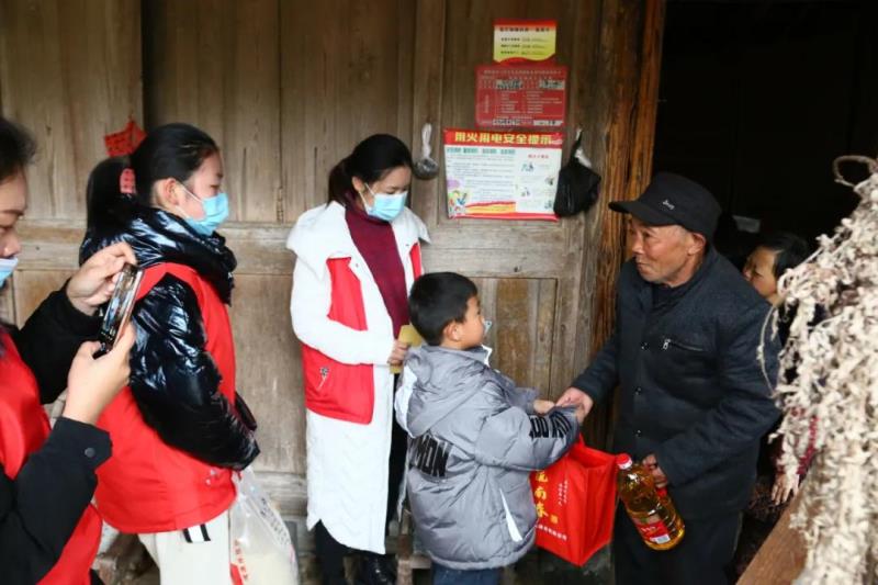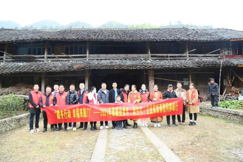 1月27日下午,泰順縣青年(新生代)企業(yè)家聯誼會會長、振泰建設股份有限公司董事長葉圣歡攜秘書長,會員企業(yè)泰順縣農商銀行城東支行、浙江天關山酒業(yè)股份有限公司等企業(yè)代表到柳峰鄉(xiāng)開展“暖冬行動·幸福來敲門”節(jié)前慰問活動。共青團泰順縣委副書記高夢楠一同前往。