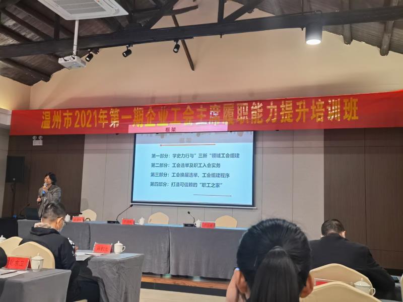培訓(xùn)班邀請了浙江省總干校副教授陳捷敏主講《學(xué)史力行,扎實推進(jìn)基層工會規(guī)范化建設(shè)》;原寧波市總工會組織部正處級調(diào)研員邱偉鋼主講《學(xué)習(xí)、服務(wù)、創(chuàng)新,努力在企業(yè)發(fā)展中凸現(xiàn)工會作為》;溫州市勞動人事爭議仲裁院副院長柳景玨主講《從典型案例看用工防范》。