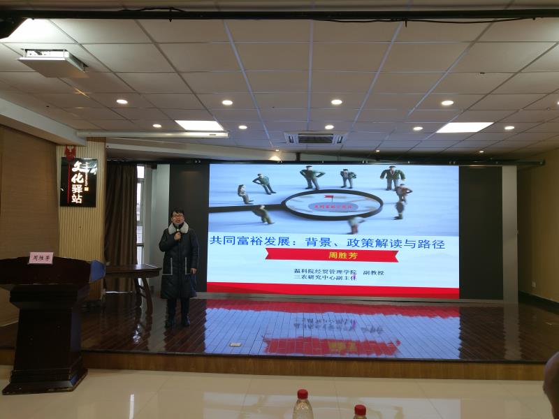 活動期間,還邀請到溫州科技職業(yè)學(xué)院副教授、三農(nóng)研究中心副主任周勝芳為全體與會人員作題為《共同富裕發(fā)展:背景、政策解讀與路徑》的專題講座。