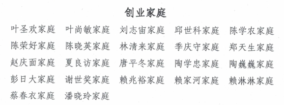 文件還公布了“和諧家庭”216個(gè)、“優(yōu)教家庭”50個(gè)、“新風(fēng)家庭”56個(gè)、“勤廉家庭”54個(gè)、“平安家庭”40個(gè)、“愛心家庭”81個(gè)、“書香家庭”24個(gè)、“愛國(guó)家庭”17個(gè)。