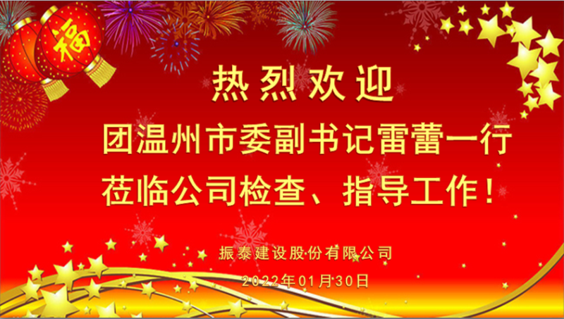 在虎年新春佳節(jié)即將來(lái)臨之際,1月30日(臘月28日)下午,共青團(tuán)溫州市委副書記雷蕾攜基層工作部副部長(zhǎng)(掛職)劉 強(qiáng),在團(tuán)泰順縣委副書記高夢(mèng)楠的陪同下,冒著嚴(yán)寒低溫,來(lái)到泰順縣青年企業(yè)家協(xié)會(huì)(新生代企業(yè)家聯(lián)誼會(huì))會(huì)長(zhǎng)單位----振泰建設(shè)股份有限公司,傳遞上級(jí)團(tuán)組織的關(guān)懷和節(jié)日問(wèn)候,同時(shí)對(duì)企業(yè)在過(guò)去一年中為泰順縣經(jīng)濟(jì)社會(huì)發(fā)展作出的貢獻(xiàn)表示感謝,并向會(huì)員企業(yè)干部職工送上新春祝福。