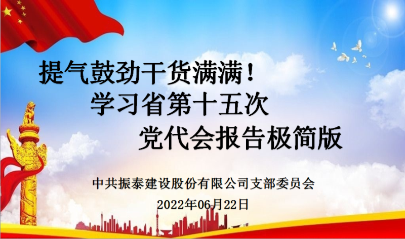 為及時(shí)、準(zhǔn)確、簡(jiǎn)明扼要地了解、掌握6月20日在杭州召開(kāi)的浙江省第十五次黨代會(huì)上袁家軍書(shū)記代表中共浙江省第十四屆委員會(huì)所作的《忠實(shí)踐行“八八戰(zhàn)略” 堅(jiān)決做到“兩個(gè)維護(hù)” 在高質(zhì)量發(fā)展中奮力推進(jìn)中國(guó)特色社會(huì)主義共同富裕先行和省域現(xiàn)代化先行》的報(bào)告,22日下午,振泰建設(shè)股份有限公司黨支部組織在泰的黨員、員工在黨員活動(dòng)室召開(kāi)《提氣鼓勁干貨滿滿!浙江省第十五次黨代會(huì)報(bào)告極簡(jiǎn)版》學(xué)習(xí)會(huì)(泰順組工2022-06-21 20:21轉(zhuǎn)載)。