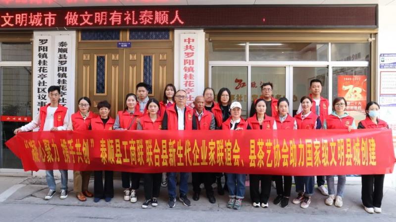 在溫州市第四屆“民營企業(yè)家節(jié)”即將來臨之際,10月14日上午,泰順縣青年企業(yè)家協(xié)會、縣茶藝協(xié)會等10多位企業(yè)家代表在縣工商聯(lián)的帶領(lǐng)下,聯(lián)合社區(qū)工作人員到羅陽鎮(zhèn)桂花亭社區(qū)開展助力文明創(chuàng)建活動(dòng)。由總經(jīng)理徐娟組隊(duì)的振泰建設(shè)股份有限公司4位同志參加。