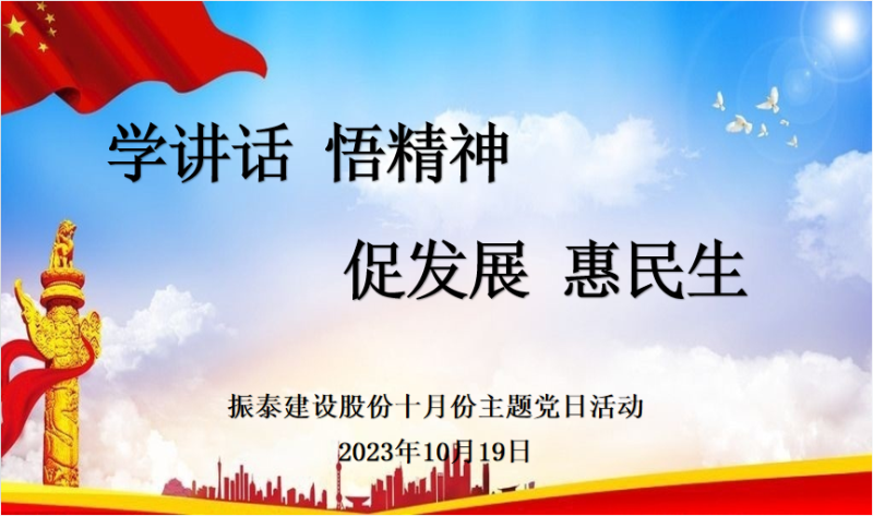 根據(jù)中共泰順縣委組織部“泰順縣基層黨組織10月份主題黨日活動要點”部署,振泰建設(shè)股份有限公司黨組織于10月19日上午在公司黨員活動室召開以“學(xué)講話 悟精神 促發(fā)展 惠民生”為主題的黨日活動,在泰的黨員、管理層、入黨積極分子參加。