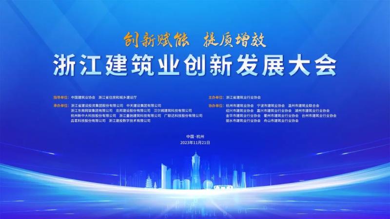 11月21日,由中國建筑業(yè)協(xié)會、浙江省住房和城鄉(xiāng)建設(shè)廳指導(dǎo),浙江省建筑業(yè)行業(yè)協(xié)會主辦,浙江省建設(shè)投資集團股份有限公司、中天建設(shè)集團有限公司、浙江東南網(wǎng)架集團有限公司、龍邦建設(shè)股份有限公司、漢爾姆建筑科技有限公司、杭州新中大科技股份有限公司、浙江量馳建筑科技有限公司、廣聯(lián)達科技股份有限公司、品茗科技股份有限公司、浙江建投數(shù)字技術(shù)有限公司聯(lián)合承辦的“浙江建筑業(yè)創(chuàng)新發(fā)展大會”在杭州城北文瀾大酒店順利召開。