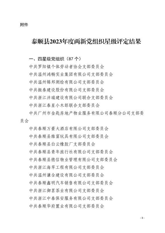泰順縣兩新黨組織2023年度星級(jí)評(píng)定結(jié)果公布